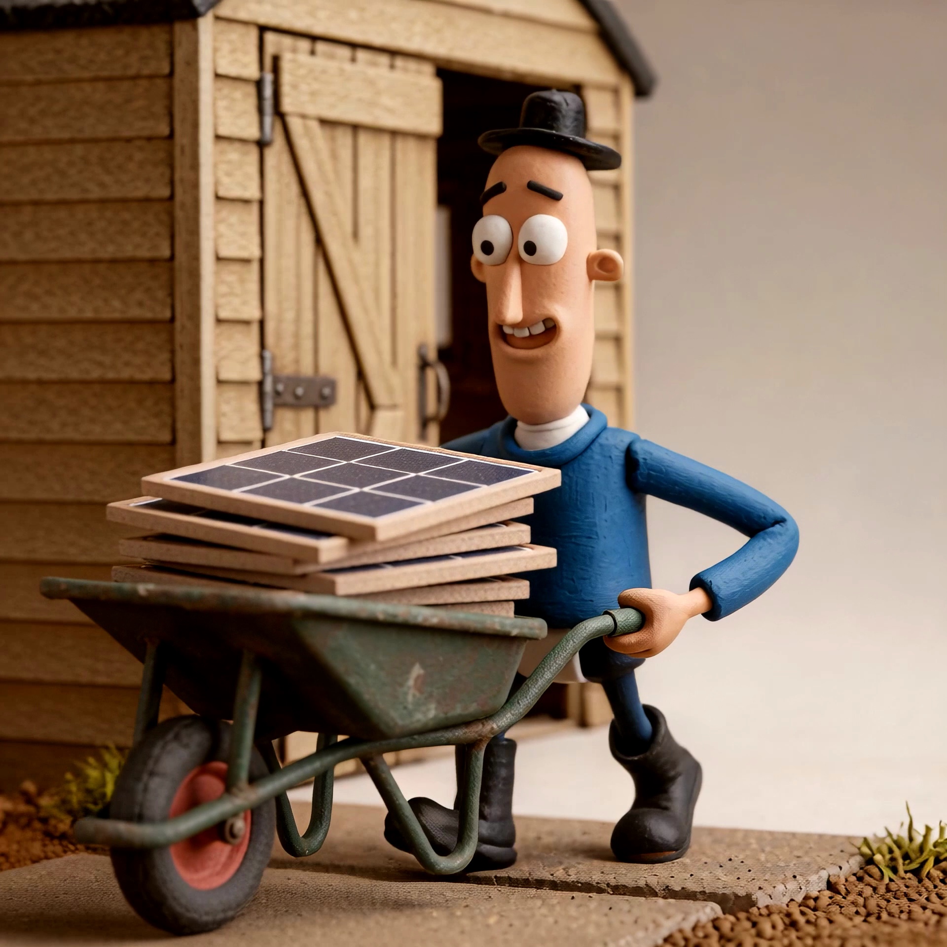 Navrhli jsme postavu „motáka“, který si vše udělá po svém, a pak odborníka, který ví, jak na to. Návrhu postavy předcházela konzultace, jak má působit – navrhli jsme pomocí AI nástrojů plastelínovou postavičku odkazující na styl Wallace & Gromit a Neverhood, kde postavy působí ztřeštěně, vesele a bezstarostně. Následovalo formování prostředí, kde bude působit (domeček, zahrada, kůlna), a technický scénář pro akce, které bude postava provádět. U těchto úkolů je největší výzvou dobře definovat prostředí, které se musí udržet konzistentní, a detailně popsat dění. Pokud něco z toho podceníte, výsledek se bude výrazně lišit od očekávání.