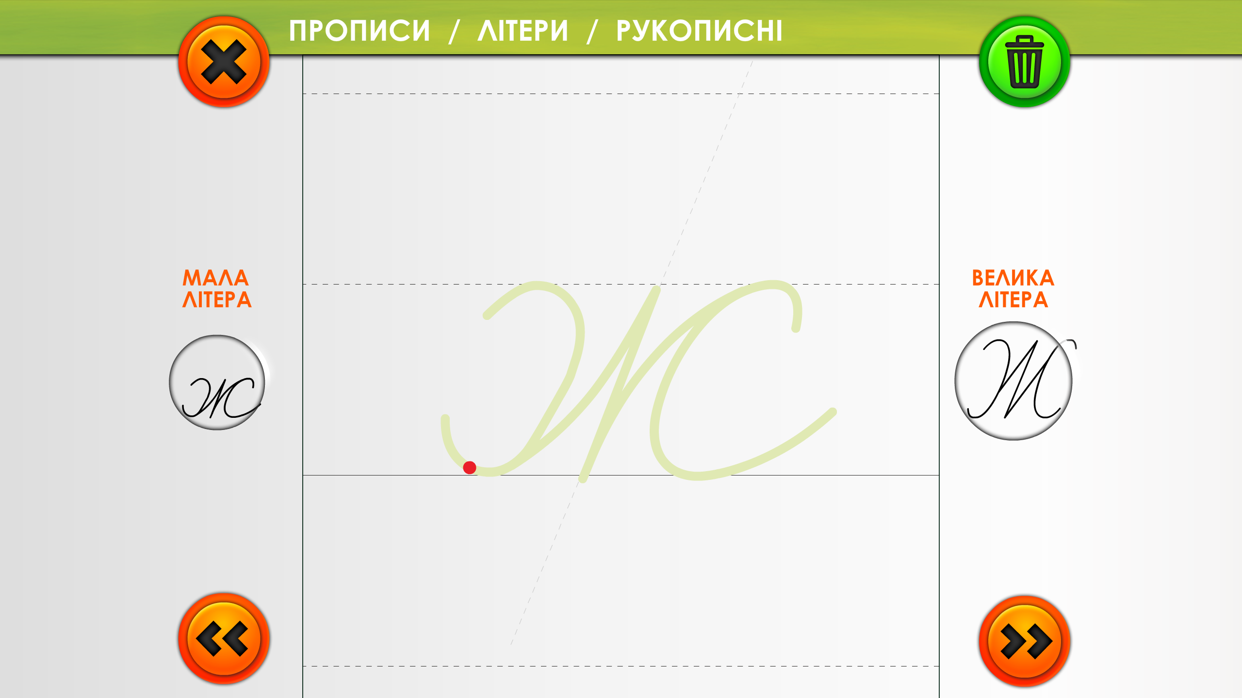 Інтерактивний посібник для дітей дошкільного та молодшого шкільного віку, який допоможе поліпшити дрібну моторику й навчить правильно писати літери та цифри. Графомоторні вправи навчать дітей розслабляти руку й креслити прямі, хвилясті та округлі лінії в різних напрямках і акуратно обводити прості фігури. Особлива увага присвячена каліграфії та удосконаленню вміння писати великі і малі прописні й друковані літери. Пунктирні лінії визначать правильну форму й нахил букви, а анімована крапка допоможе направити руку дитини правильно креслити та визначити початок і напрямок письма. Гра спрямована допомогти дітям засвоїти відповідність між прописними та друкованими літерами. Літери можна виводити пальцем, але ми рекомендуємо використовувати ручку (стилус) для планшетів, щоб освоїти уміння правильно тримати ручку. Навчити дитину писати тепер стало легко!